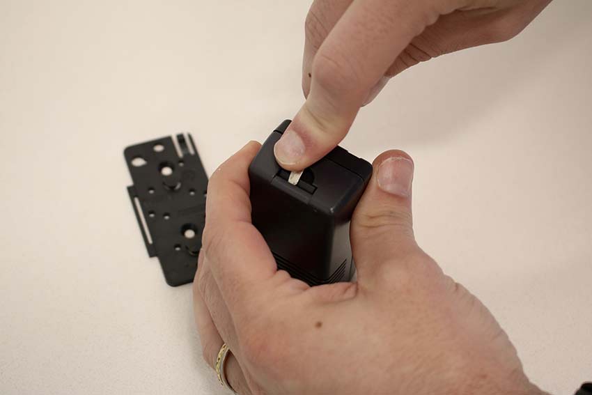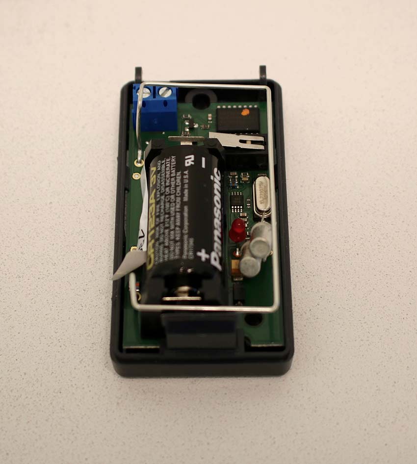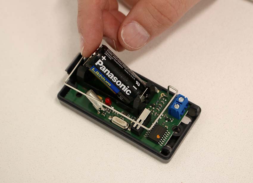 Now that the battery has been removed from the sensor, replace it with a new CR123A (or equivalent) Lithium battery.