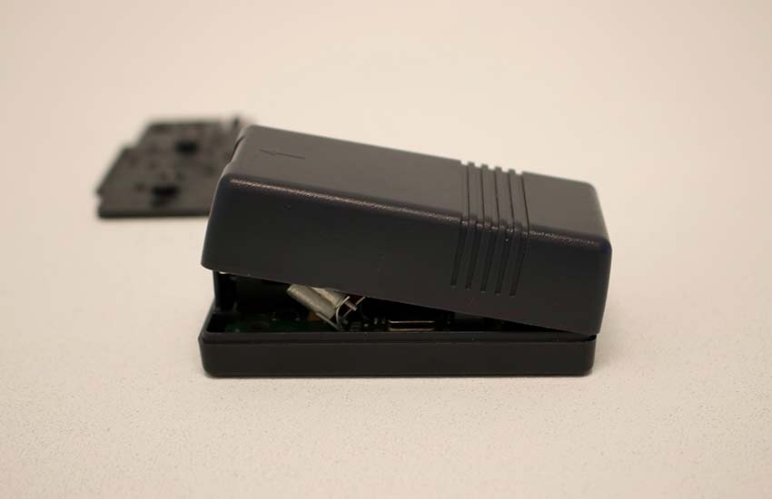 Once the locking tab of the sensor has been released, pull the lid of the sensor away, freeing it from the sensor, and exposing the inside of the sensor.