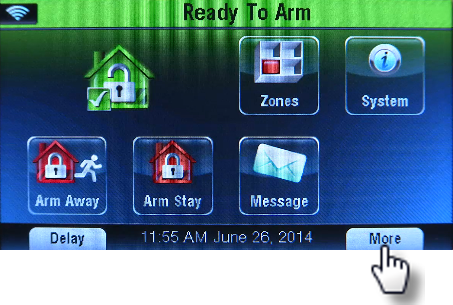 Staying - Armed Stay (door, window, and glass break sensors will be activated, but motion sensors are not active which allows you to move freely around the home). The panel will beep three times and announce "Armed Stay", and the silent countdown begins.