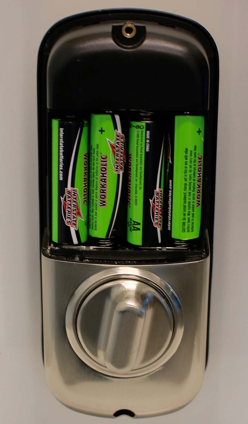 The batteries may also be dead, if the batteries are dead, use a 9 volt battery in the convenient aux power port, then use the code to open the door and replace the batteries.